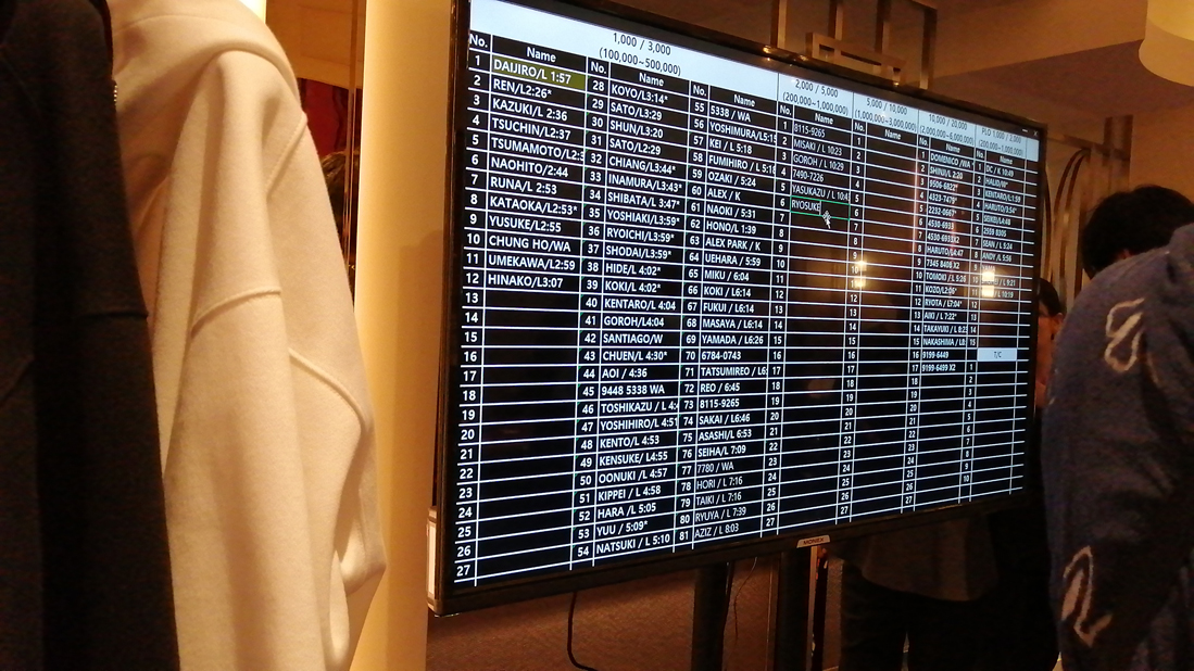 ウェイティングボードを見ると軽く100人以上いる様で10/20やPLOまで立っているのは初めて見ました。
